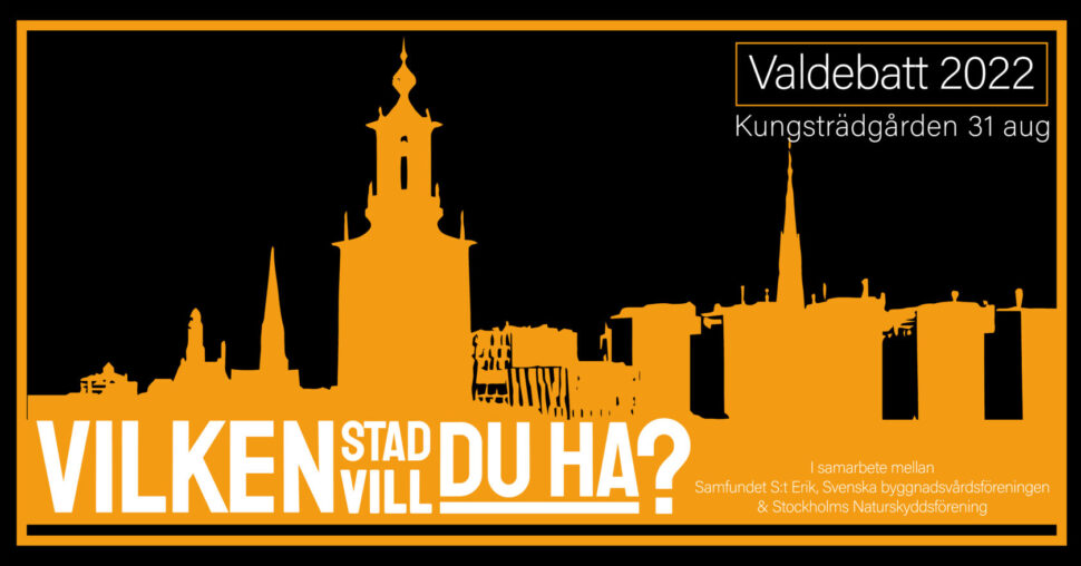 2022/06/22RESERVERA DATUMET! Valdebatt om Stockholms stadsbyggande och stadsmiljö! 31 augusti, Kungsträdgården Vilka bestämmer om stadens utveckling? Exploatörer, politiker eller...