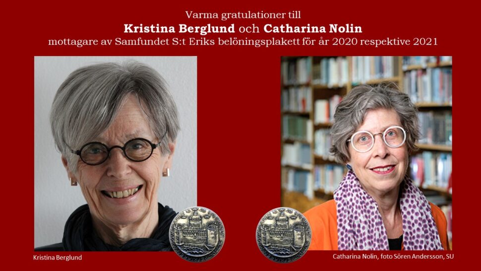 2021/04/28Kristina Berglund och Catharina Nolin tilldelades vid Samfundet S:t Eriks årsmöte den 27 april samfundets belöningsplakett för år 2020 respektive 2021...