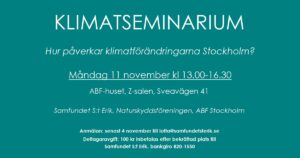 Här hittar du programmet till Klimatseminarium 11 nov 2019 program